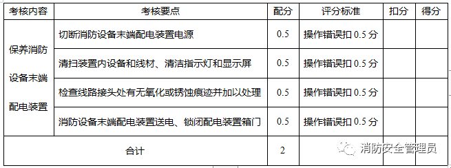 考场准备:消防设备末端配电装置工作正常2.考核要求:能保养消防设备末端配电装置的工作状态3.考核时间:2分钟4.配分与评分标准: